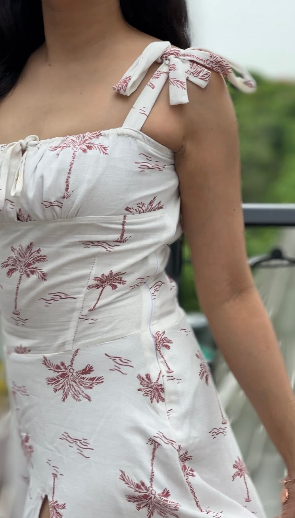 Say hello to your new summer showstopper — the Isla Maxi Slit Dress. This breezy white maxi features a subtle palm print and built-in lining for full coverage (no see-through moments here!). With a dramatic side slit and statement-worthy flare, it’s designed to make an entrance. The tie-knot back adds a touch of charm while giving you a custom, waist-snatching fit. Whether it’s a beach brunch or a golden hour getaway, this dress is all eyes on you.